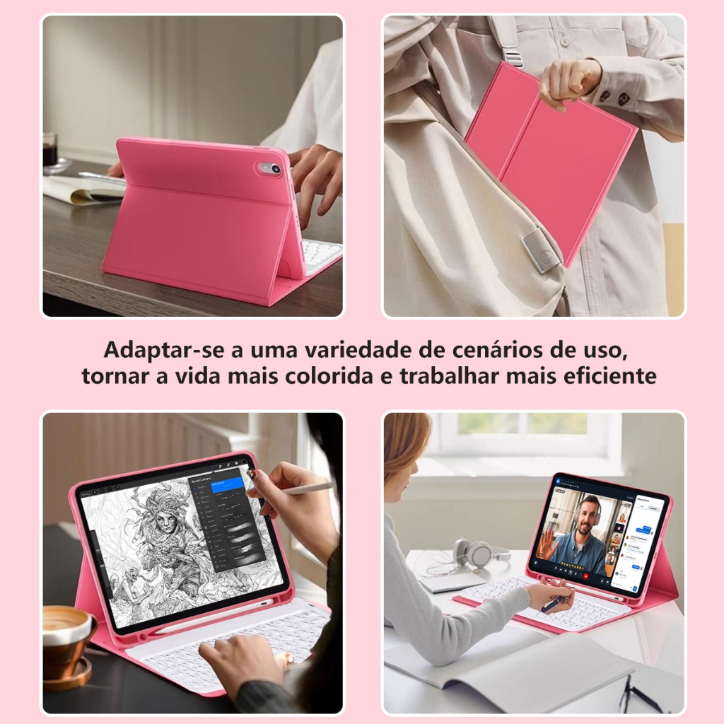 📢 Promoção Exclusiva! Conjunto Capa com Teclado ! ⚠️ Atenção: Caneta capacitiva não inclusa. Compatível apenas com os seguintes modelos tablet: -- 2017 iPad 5ª Geração 9,7polegadas A1822/A1823 2018 iPad 6ª Geração 9,7polegadas A1893/A1954 2013 iPad air 1 9,7polegadas A1474/A1475/A1476 2014 iPad air 2 9,7polegadas A1566/A1567 2016 iPad Pro 9,7polegadas A1673/A1674/A1675 -- 2019 iPad 7ª Geração 10,2polegadas A2197/A2198/A2200 2020 iPad 8ª Geração 10,2polegadas A2270/A2428/A2429/A2430 2021 iPad 9ª Geração 10,2polegadas A2602/A2603/A2604/A2605 2019 iPad air 3 10,5polegadas A2152/A2123/A2153/A2154 2017 iPad Pro 10,5polegadas A1701/A1709/A1852 -- 2022 iPad 10ª Geração 10,9polegadas A2696/A2757/A2777 2025 iPad 11ª Geração A16 A3354/A3355/A3356 -- 2020 iPad air 4 10,9polegadas A2316/A2324/A2325/A2072 2022 iPad air 5 10,9polegadas A2588/A2589/A2591 -- 2018 iPad Pro 1ª Geração 11polegadas A1980/A2013/A1934/A1979 2020 iPad Pro 2ª Geração 11polegadas A2228/A2068/A2030/A2231 2021 iPad Pro 3ª Geração 11polegadas A2377/A2459/A2301/A2460 2022 iPad Pro 4ª Geração 11polegadas A2759/A2435/A2761/A2762 -- 2018 iPad Pro 3ª Geração 12,9polegadas A1876/A2014/A1895/A1983 2020 iPad Pro 4ª Geração 12,9polegadas A2229/A2069/A2232/A2233 2021 iPad Pro 5ª Geração 12,9polegadas A2378/A2461/A2379/A2462 2022 iPad Pro 6ª Geração 12,9polegadas A2436/A2764/A2437/A2766 🔍 Confirme o modelo do tablet antes de comprar! Tamanhos similares podem não ser compatíveis. Caso não encontre seu modelo, consulte nosso atendimento. ✨ Destaques do Produto: ✅ Design Prático: Capa divisível com proteção em silicone macio e slot invisível para caneta. Material premium antirriscos e resistente a impactos, garantindo segurança diária. ⌨️ 10 polegadas-Teclado Magnético sem Fio: Tecnologia Bluetooth estável e teclas de resposta rápida. Teclas multimídia (F1-F12) para controle de entretenimento e produtividade. 🎨 Cores Variadas: Disponível em múltiplas cores (observação: tons podem variar levemente devido à iluminação). 🔋 Como Usar? 1️⃣ Pré-uso Importante: Carregue totalmente teclado e mouse (cerca de 2 horas). Use apenas o cabo fornecido ou carregador padrão (evite carregadores rápidos para não danificar o dispositivo). 2️⃣ Conexão do Teclado: Ligue o botão “ON”. Pressione e segure o botão "FN+C" para ativar o modo bluetooth do teclado. 💡 Dica: Indicador de carga: Luz vermelha/piscante = carregando; luz verde/desligada = carga completa. 🌟 Garantia de Satisfação! Há um período de reembolso de 7 dias após a assinatura do produto. 📦Enviado dentro de dois dias úteis após o pedido! 🛒 Compre agora e eleve sua produtividade com estilo!