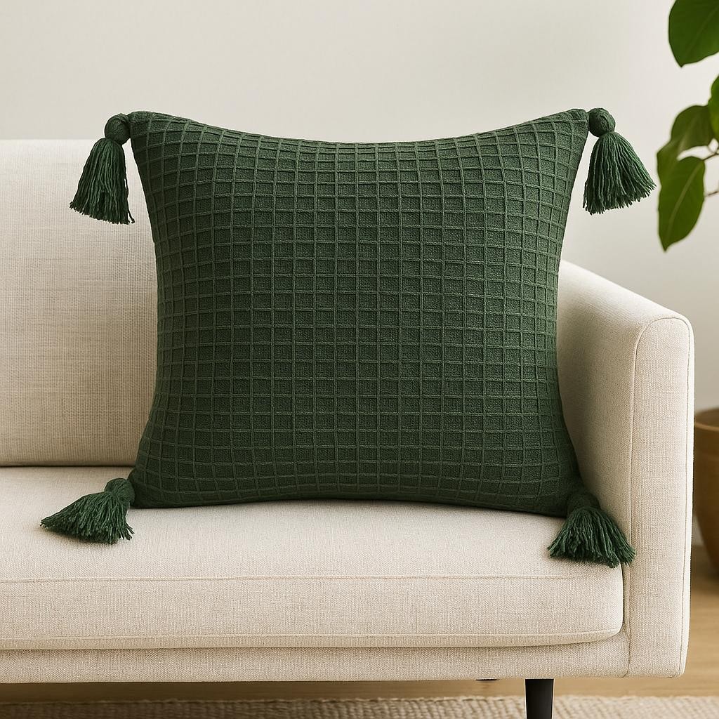 Capa de almofada boho 45x45 pompom piquet algodão bohochic