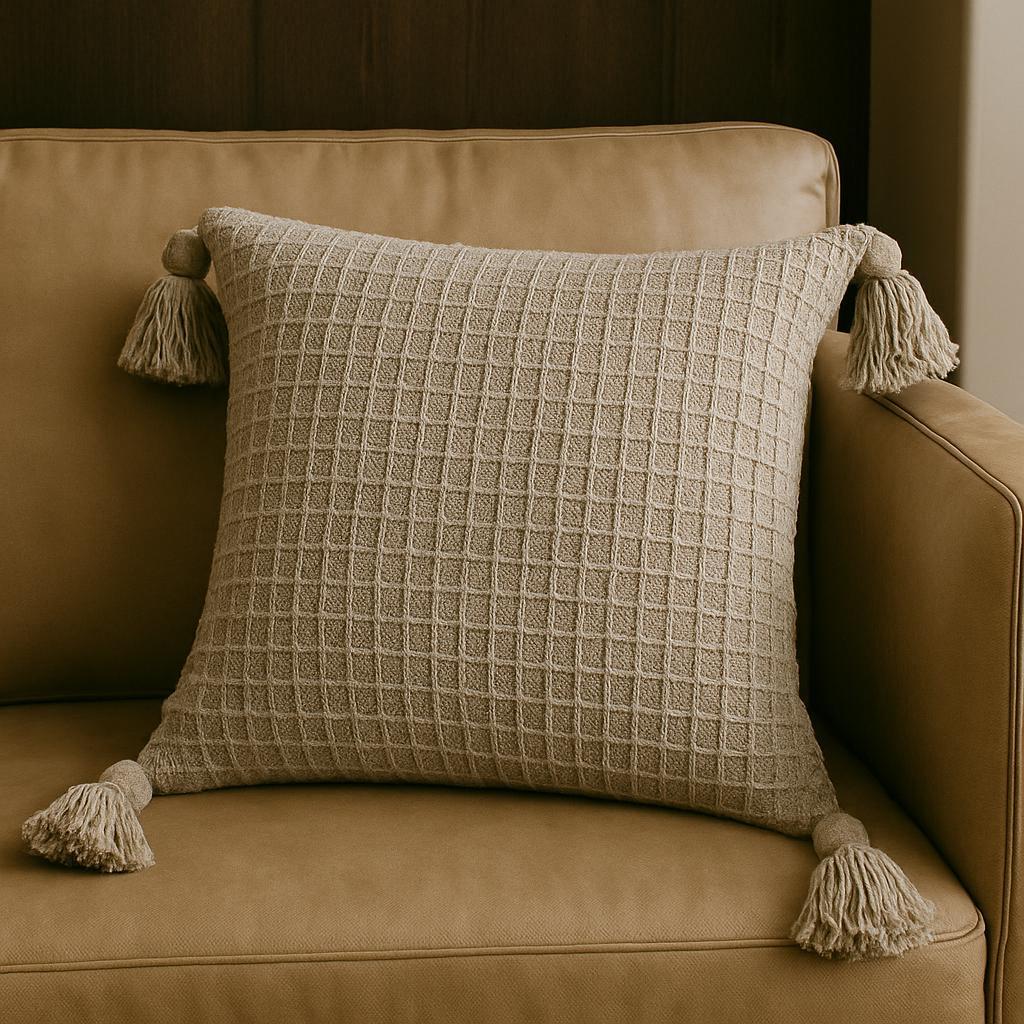 Capa de almofada boho 45x45 pompom piquet cru algodão bohochic