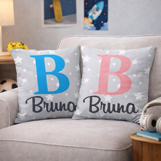 Capa De Almofada Personalizada Com Nome E Inicial - Estrelas, Infantil, Menina E Menino