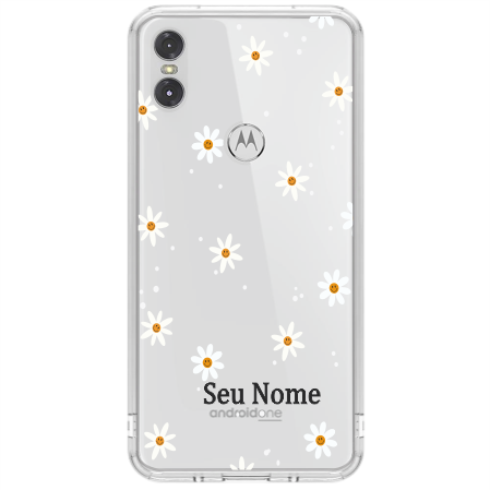 Capa de Celular Capinha Moto One Personalizada - Margaridas nome