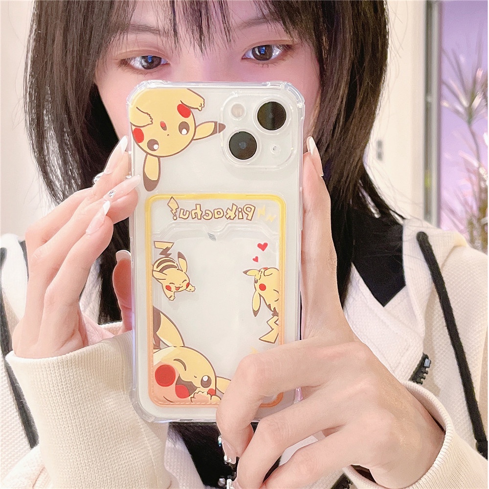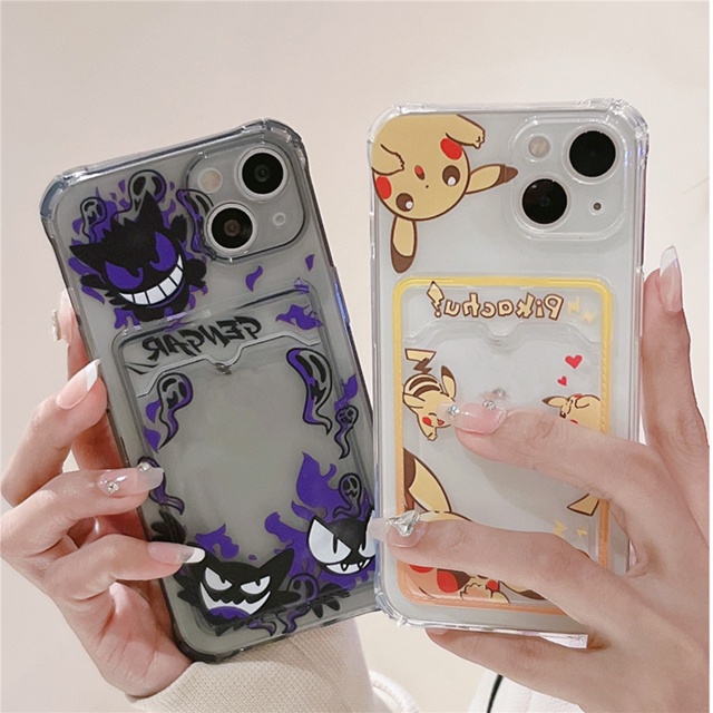 Capa De Celular Transparente Anti-Impacto Para iPhone 12 14 13 12 11 Pro Max X XS XR 7 8 Plus Fofo Desenho Macio Carteira Cartão Suporte
