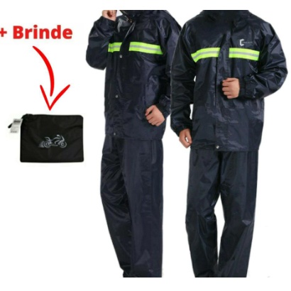 CONFIRMANDO PAGAMENTO ATÉ 11HRS, ENVIAMOS NO MESMO DIA A capa de chuva é confeccionada com materiais de alta qualidade, além de ser resistente ela proporciona melhor flexibilidade para que tenha liberdade nos movimentos, sem contar que é um produto indispensável para o piloto e até mesmo o garupa. Possui faixa refletiva para maior segurança e proteção, além de ser compacta, fácil de carregar. ATENÇÃO Sempre que for comprar um tamanho, opte por 1 ou 2 números a mais, a calça é um pouco justa, se ficar apertado devolva, não force o uso, pois pode ser que o produto rasgue e não cobrimos a garantia do mesmo. Características - Impermeável - Fita refletora nas costas da jaqueta - Capuz - Calça com elástico - Elástico nos punhos e cintura - Jaqueta com zíper No Kit contém: - 1 Calça com elástico. - 1 Jaqueta com capuz - Bolsa para transportar. ATENÇÃO PARA ROUPAS DE CHUVA, CONSIDERAR UM TAMANHO MAIOR POIS A CAPA É USADA SOBRE AS ROUPAS. Guia de tamanhos JAQUETA (M) - Comprimento da Jaqueta com Capuz: 103 cm - Comprimento da Jaqueta sem Capuz: 76 cm - Tórax: 63cm - Largura total com a Manga: 156cm - Manga: 71cm CALÇA (M) - Comprimento da Calça: 107 cm - Cintura: 24 cm - Quadril: 63cm - Parte interna da calça: 29cm JAQUETA (G) - Comprimento da Jaqueta com Capuz: 105 cm - Comprimento da Jaqueta sem Capuz: 79 cm - Tórax: 67,5cm - Largura total com a Manga: 172cm - Manga: 78cm CALÇA (G) - Comprimento da Calça: 107cm - Cintura: 25cm - Quadril: 66cm - Parte interna da calça: 33cm JAQUETA (GG) - Comprimento da Jaqueta com Capuz: 107 cm - Comprimento da Jaqueta sem Capuz: 82 cm - Tórax: 72 cm - Largura total com a Manga: 188 cm - Manga: 85 cm CALÇA (GG) - Comprimento da Calça: 107cm - Cintura: 26 cm - Quadril: 69 cm - Parte interna da calça: 37 cm