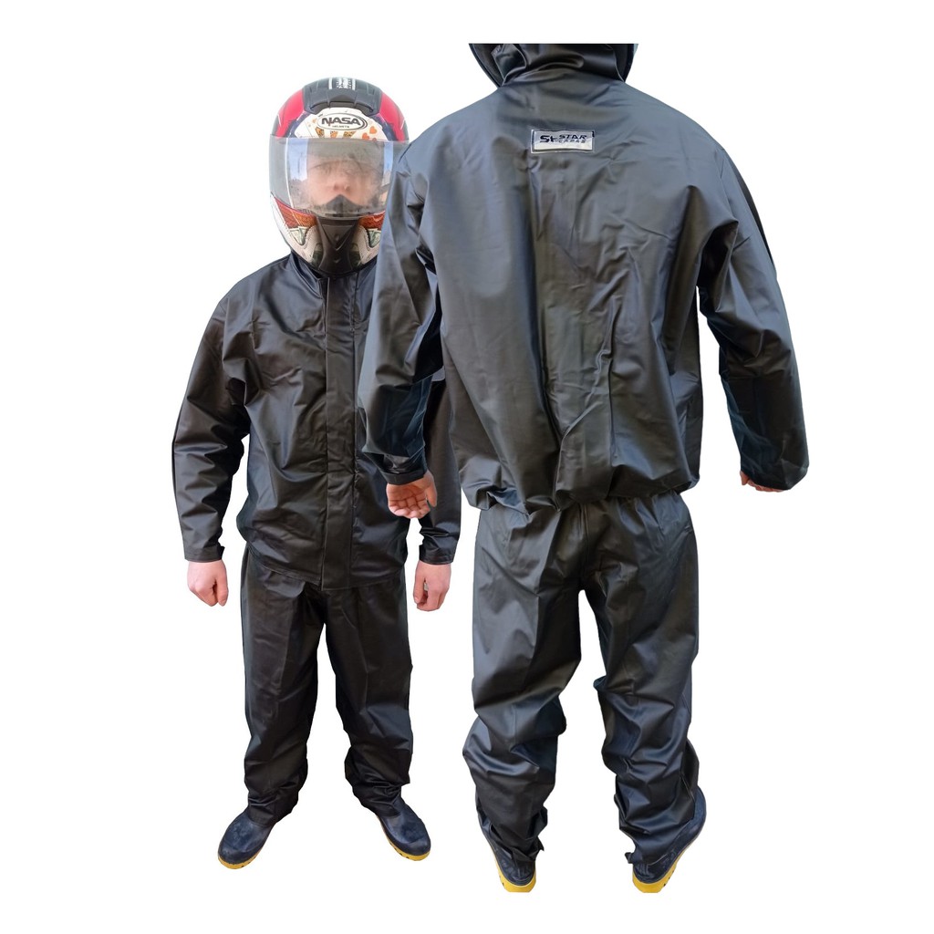 Capa De Chuva Conjunto Calça Jaqueta Impermeavel Luxo Pvc Com Bolso Moto/Motoboy/Motoqueiro+ Bota Borracha + Touca Ninja