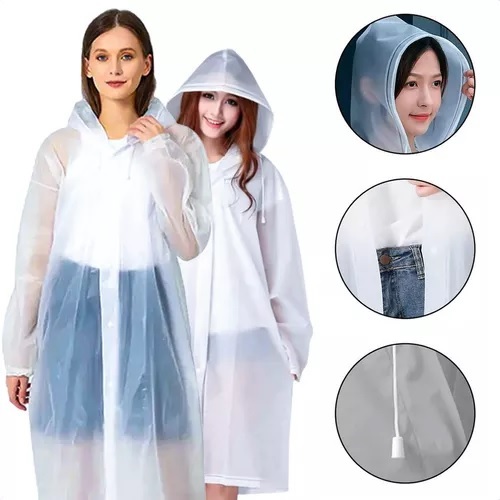 Capa de Chuva Grossa Longa Vinil Transparente com Capuz Impermeável Reutilizavel Shows Festas Eventos
