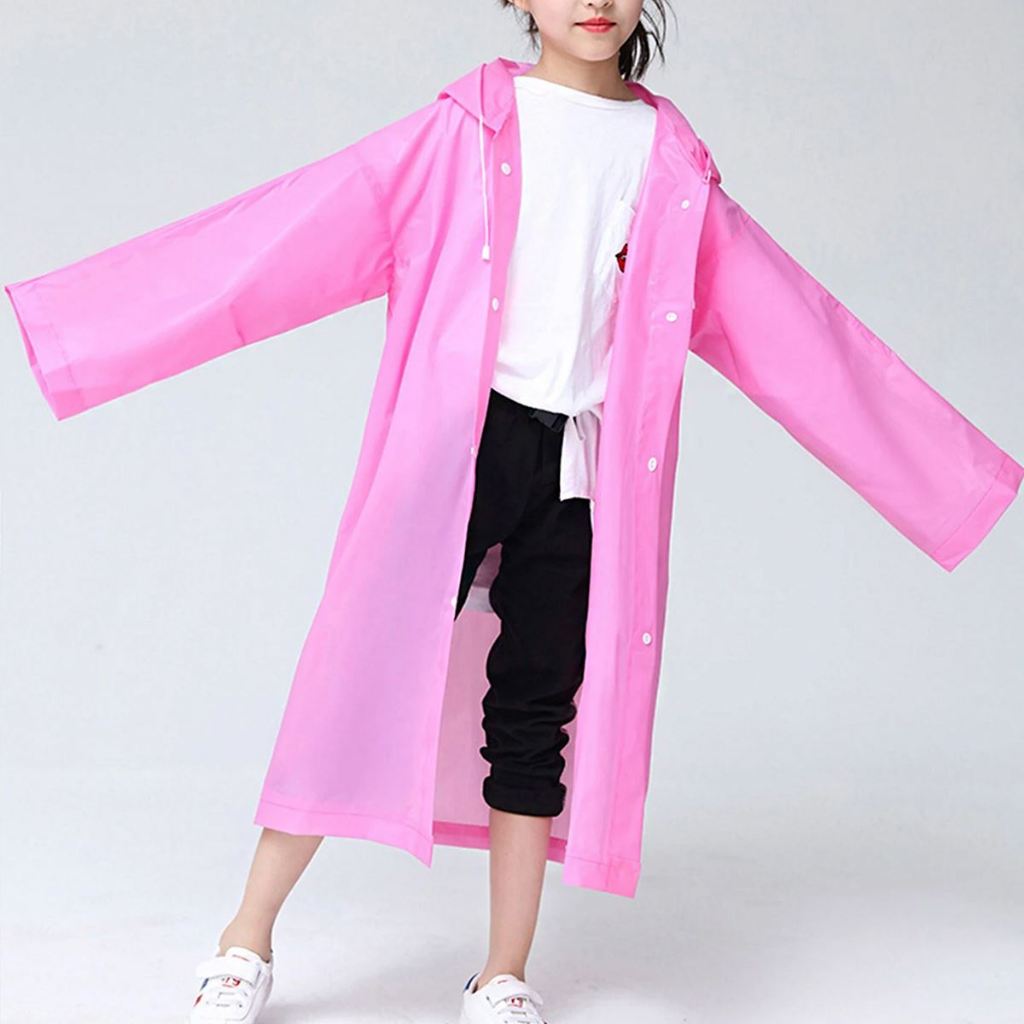 Capa de Chuva Infantil Juvenil Adolescente Com Capuz Ajustável Impermeável Unissex Liso