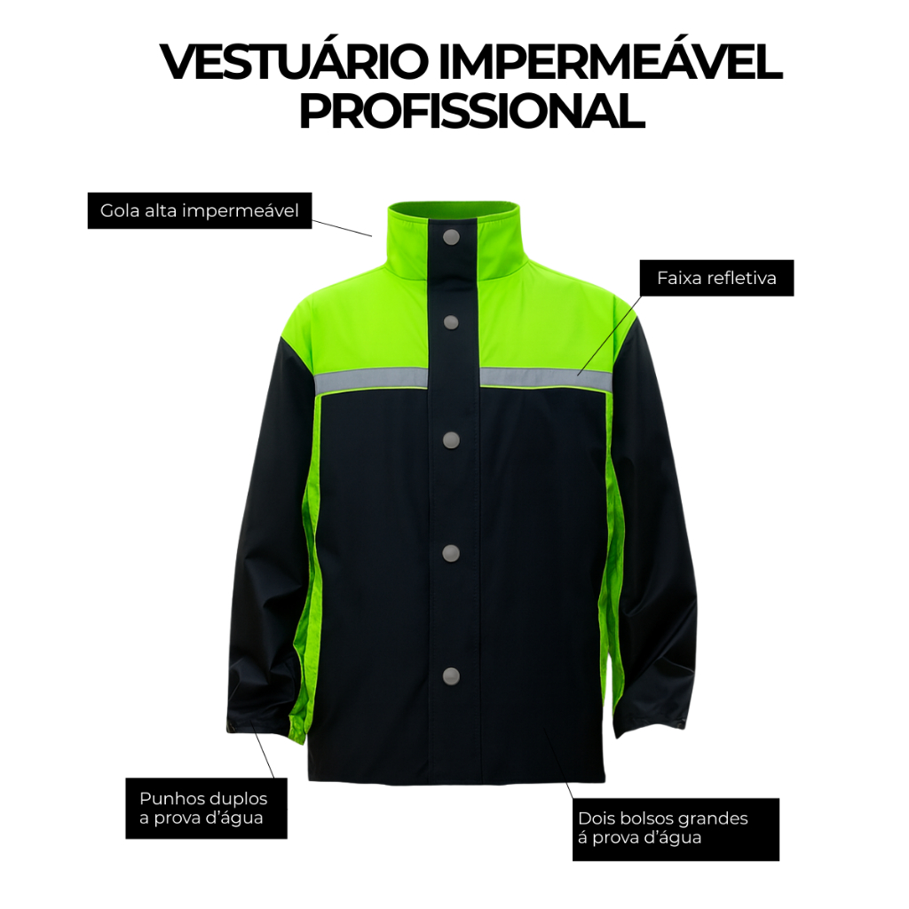 Enfrente qualquer clima com o Kit Capa de Chuva Impermeável para Moto, ideal para motociclista, motoboy, motoqueiro e motoqueira que precisam de segurança, conforto e mobilidade no dia a dia. Este conjunto completo acompanha blusa + calça com polaina e proteção para bota, oferecendo cobertura total do corpo e impedindo que a água atinja roupas ou calçados. Produzida em material reforçado (PVC + nylon impermeável), a capa garante alta durabilidade e resistência mesmo sob chuvas intensas. Seu design flexível, leve e prático permite movimentação natural, ideal para trabalhar, viajar ou pilotar longas distâncias. Recomendações de Tamanho: P --- 160 - 165 --- 45 - 55 M --- 165 - 170 --- 55 - 70 G --- 170 - 175 --- 70 - 80 GG --- 175 - 180 --- 80 - 90 XG --- 180 E acima --- 90 - 100 O tecido impermeável possui elasticidade limitada, por isso recomendamos escolher um tamanho maior para um ajuste mais confortável. Desempenho Impermeável Reforçado: O conjunto é fabricado com multicamadas que bloqueiam a água com eficiência. Conta com vedação nas costuras, zíper protegido e áreas reforçadas — perfeito para quem precisa de proteção real. Material resistente: PVC + nylon Capuz integrado (c/capuz), ajustável e removível Gola alta que impede a entrada de água Polaina integrada para proteger a bota Conjunto completo (blusa + calça) Ideal para pantaneiro, motoboy, motociclista urbano e estrada Segurança e Conforto Para Moto: Esta capa de chuva foi pensada para quem trabalha ou roda diariamente, incluindo: Faixas refletivas para maior visibilidade noturna, essencial para motoboys e motoqueiros. Forro leve e confortável, garantindo proteção sem excesso de calor. Tecido impermeável Storm, tipo EPI, ideal para uso intenso. Compatível com uso de mochila, balaclava, luva touch screen, botas e demais EPIs. Design Profissional e Funcional: Resistente ao frio, vento e chuva Estrutura reforçada e durável (Reforçada / Impermeável.) Ajustes elásticos para evitar entrada de água Zíper protegido com aba de segurança Parte inferior com polaina para proteger a bota Fácil de vestir, mesmo com roupas por baixo Indicado Para: Motoboy e motociclista Motoqueiro / motoqueira Trabalho no frio e chuva Viagens e longas distâncias Atividades ao ar livre Uso profissional e diário Itens Inclusos no Kit: Blusa impermeável (1 un.) Calça impermeável com proteção de bota (1 un.) Cuidados Importantes: Não lavar na máquina. Para limpeza, utilize escova macia e pano úmido para conservar a impermeabilidade. Não usar cloro ou produtos abrasivos. Suporte ao Cliente: Em caso de dúvidas após o recebimento, basta entrar em contato. Respondemos em até 12 horas em dias úteis e 48 horas aos fins de semana.