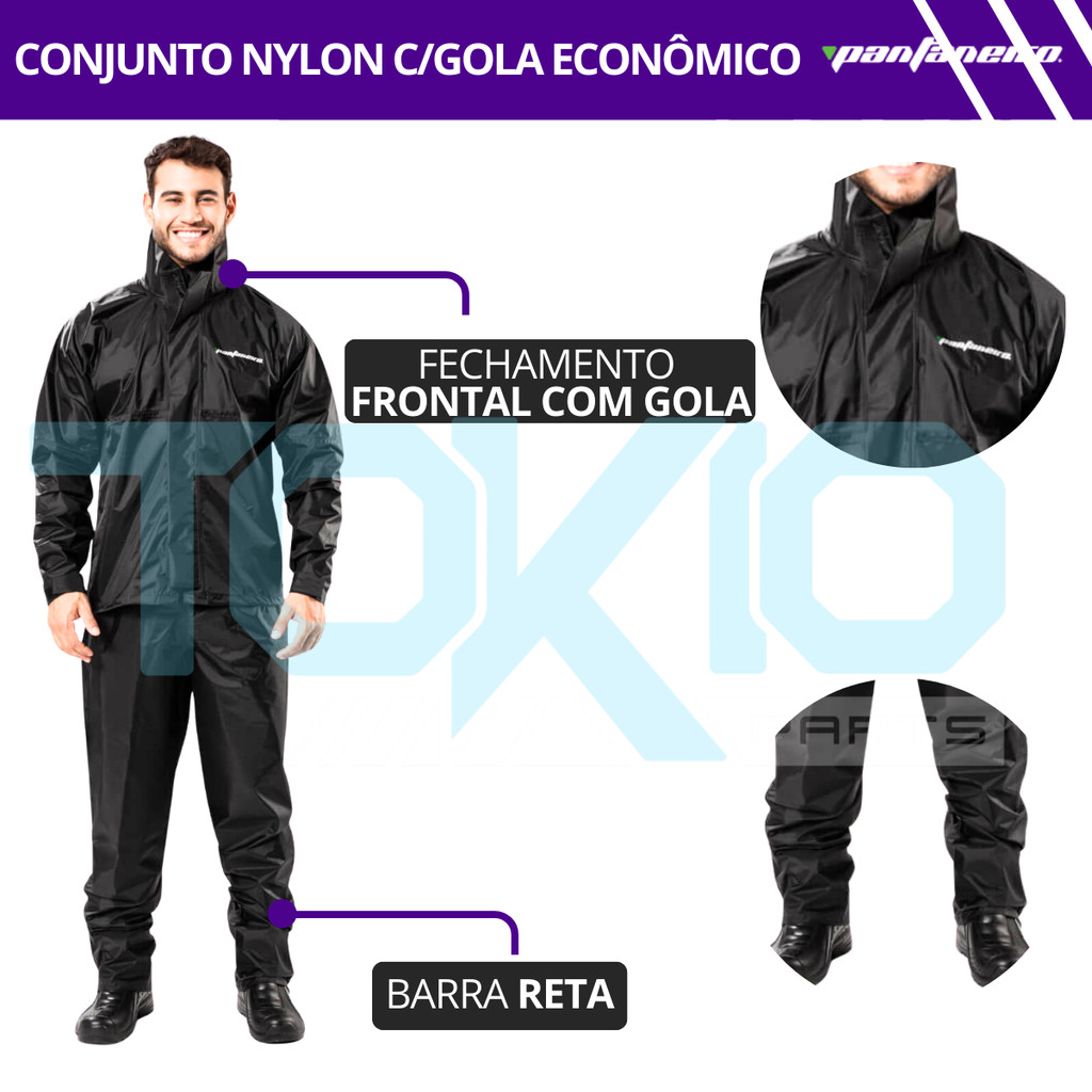 Capa de Chuva Nylon Econômico Motoqueiro Pantaneiro Com Gola
