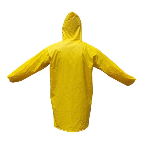 Capa de segurança confeccionada em PVC com forro de poliéster, mangas longas, capuz, fechamento frontal com quatro botões plásticos de pressão, costuras através de solda eletrônica. GRAMATURA: G25 Aprovado Para: PROTEÇÃO DO TRONCO E MEMBROS SUPERIORES DO USUÁRIO CONTRA UMIDADE PROVENIENTE DE OPERAÇÕES COM USO DE ÁGUA E CONTRA AGENTES METEOROLÓGICOS. COM CERTIFICADO DE APROVAÇÃO CAPA DE CHUVA PVC CA: 49.932