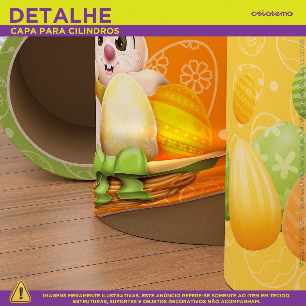 Capa de Cilindro Festa Páscoa Em Tecido Sublimado Veste Fácil Decoração Festa