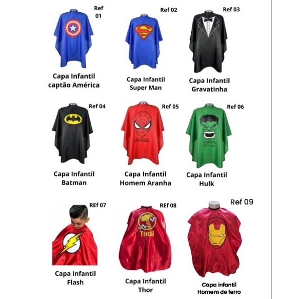 Capa de corte infantil de cetim barbearia cabeleireiro salão de beleza capitão América hulk super homem batman