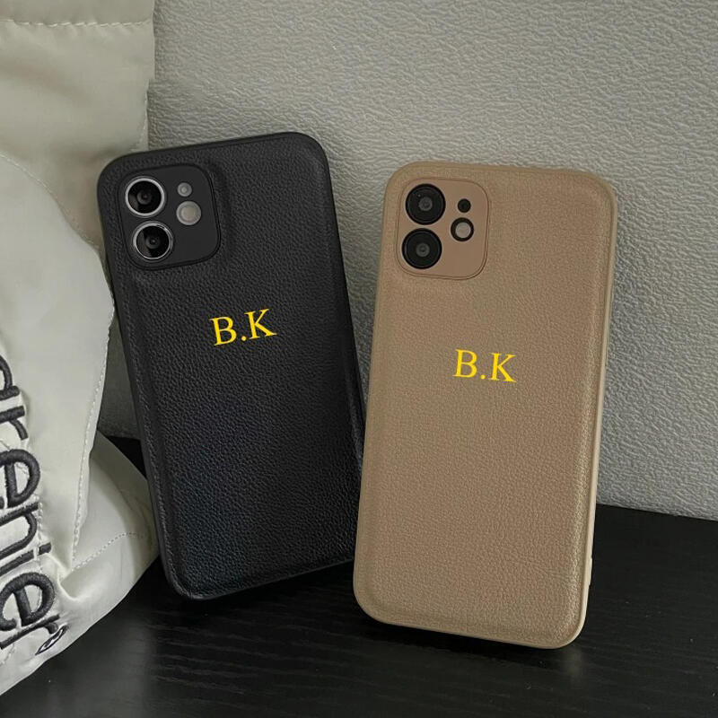 Capa De Couro Com Letras De Nome De Iniciais Personalizadas Para iPhone Air 17 16 15 14 13 12 11 Pro Max