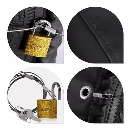 Capa de estepe produzida em courvim sintético emborrachado, com revestimento interno em poliéster que dá ao produto uma maior durabilidade e elasticidade Conta com costuras duplas, cinta elástica para um ajuste perfeito. Para proteção contra furto, acompanha cabo de aço plastificado e cadeado com 2 chaves A impressão e de alta qualidade com técnica de impressão em alta definição. A frente possui acabamento BRILHANTE, o que proporciona aspecto muito mais agradável em relação as impressões tradicionais Para rodas de aro 13 a 16 polegadas '' NÃO COMPATÍVEL COM PNEUS DE PAJERO '' Compatível com os modelos: • AirCross 2010/. (Pneu 205/60/aro 16) • CrossFox 2005/. (Pneu 205/60/aro 15) • EcoSport 2003 até 2012 (Pneu 205/65/aro 15) • EcoSport Nova 2012/. (Pneu 205/60/aro 16 e 205/65/aro 15) • Spin Active 2015/. (Pneu 205/60/aro 16) Material: Courvim impermeável e Lona de PVC impermeável. Cadeado com duas chaves. Cabo de aço. Peso: 0,500 gramas. 1x Capa de estepe. 1x Cabo de aço plastificado. 1x Cadeado com 2 chaves. Garantia do vendedor: 3 meses