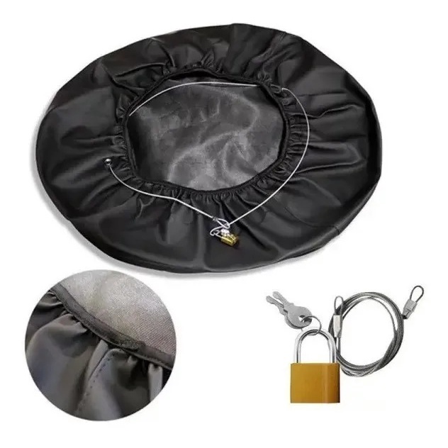 Capa de estepe produzida em courvim sintético emborrachado, com revestimento interno em poliéster que dá ao produto uma maior durabilidade e elasticidade. Conta com costuras duplas, cinta elástica para um ajuste perfeito. Para proteção contra furto, acompanha cabo de aço plastificado e cadeado com 2 chaves. A impressão e de alta qualidade com técnica de impressão em alta definição. A frente possui acabamento BRILHANTE, o que proporciona aspecto muito mais agradável em relação as impressões tradicionais. Para rodas de aro 13 a 16 polegadas. ** NÃO COMPATÍVEL COM PNEUS DE PAJERO ** Compatível com os modelos: • AirCross 2010/.. (Pneu 205/60/aro 16) • CrossFox 2005/.. (Pneu 205/60/aro 15) • EcoSport 2003 até 2012 (Pneu 205/65/aro 15) • EcoSport Nova 2012/.. (Pneu 205/60/aro 16 e 205/65/aro 15) • Spin Active 2015/.. (Pneu 205/60/aro 16) Material: Courvim impermeável e Lona de PVC impermeável. Cadeado com duas chaves Cabo de aço Peso: 0,500 gramas. 1x Capa de estepe. 1x Cabo de aço plastificado. 1x Cadeado com 2 chaves.