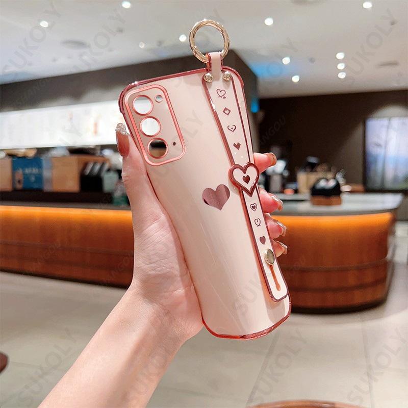 Capa De Luxo Suporte De Pulseira Para Samsung Galaxy S22 Ultra S21 Plus S20 FE Revestimento De Coração De Amor
