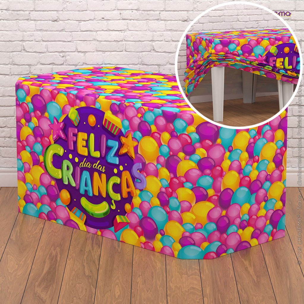 Capa de Mesa Festa Dia das Crianças Sublimada Forro Veste Fácil Em Tecido