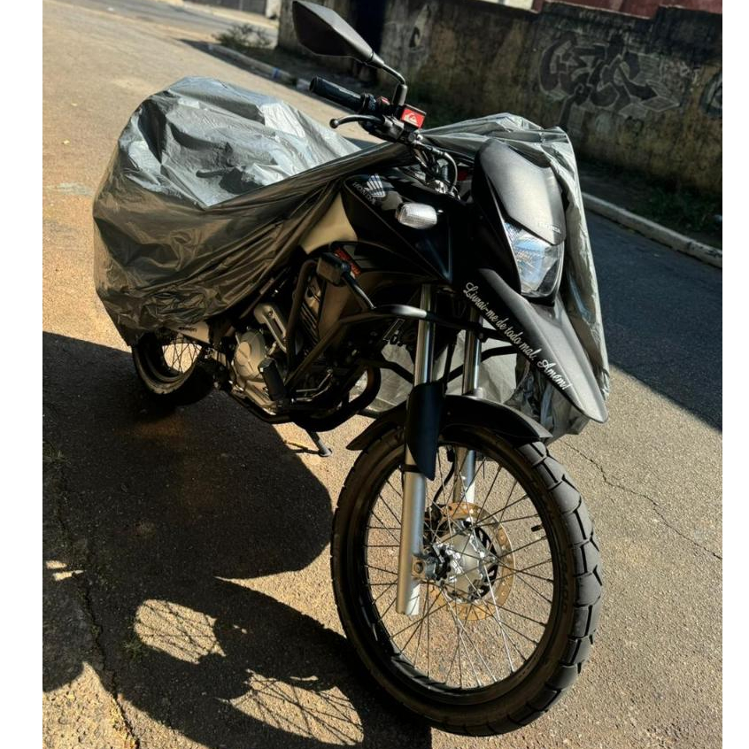 Seja qual for o clima, sua moto estará sempre protegida com a Capa de Proteção Impermeável. Ela protege contra os danos causados pelo sol, chuva, poeira, maresias, dejeto de pássaros, resíduos de árvores, fuligem e outros agentes externos que podem comprometer a pintura e os componentes do seu veículo. *NÃO COLOCAR A CAPA NA MOTO COM O ESCAPAMENTO QUENTE* TAMANHO: M - Comp 2,82 MOTOS MEDIO PORTE ENTRE 250 CL a 400 CL ESPECIFICAÇÕES ✔ Confeccionada 100% em Polietileno ✔ Material Durável e Reforçado ✔ 100% Impermeável - Protege contra chuva, umidade, e respingos de água. ✔ Proteção Contra Raios Ultra Violeta - Evita desgaste e desbotamento da pintura causado pelo sol. ✔ Com elásticos para melhor fixação. ✔ Não Risca a Pintura da Moto ❓ DÚVIDAS FREQUENTES • O material é realmente impermeável? Sim! A capa é totalmente impermeável e protege contra chuva e respingos. • Serve no meu modelo de moto? Temos tamanhos P, M e G. Entre em contato para saber o tamanho ideal para sua moto. • Cobre a moto toda? Sim, a capa cobre até as rodas, garantindo proteção completa. • Tem elástico para fixar? Sim! A base tem elástico que garante melhor ajuste e evita que a capa saia com o vento. • Protege contra sol e poeira? Sim! Além de impermeável, ela ajuda a evitar danos causados pelo sol e mantém a moto limpa. • É fácil de colocar e tirar? Muito fácil! O material leve e os elásticos ajudam na instalação rápida. 🚚 ENVIO RÁPIDO 📦 Produto bem embalado para evitar danos no transporte. **ENVIAMOS EM ATÉ 24HRS, CASO COMPRE NO FIM DE SEMANA OU FERIADO, SERÁ ENVIADO NO PRÓXIMO DIA ÚTIL**