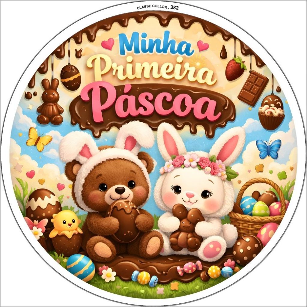 Capa de Painel Redondo 50cm Páscoa Infantil – Minha Primeira Páscoa