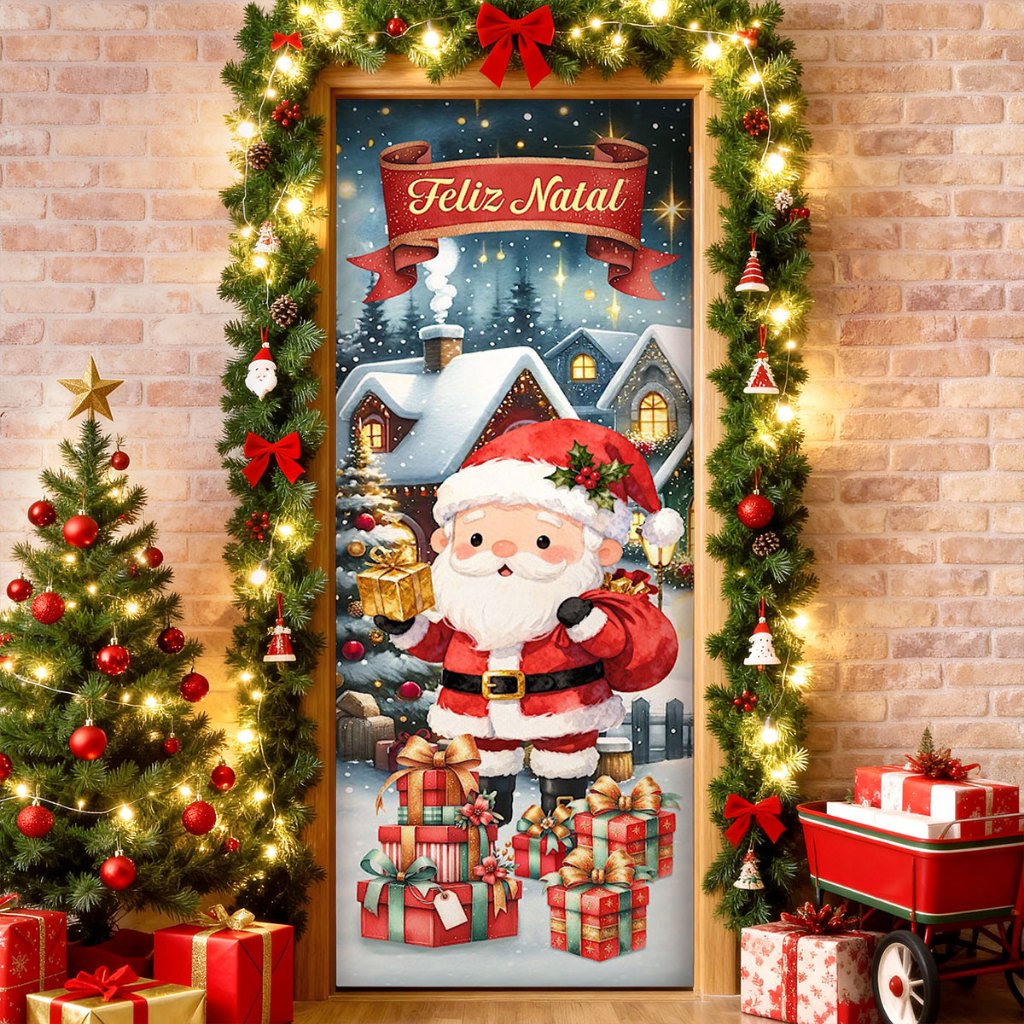 Capa de Porta Decoração de Natal para Casa Tecido Sublimado Veste Porta C/Elástico 0,85x2,10m
