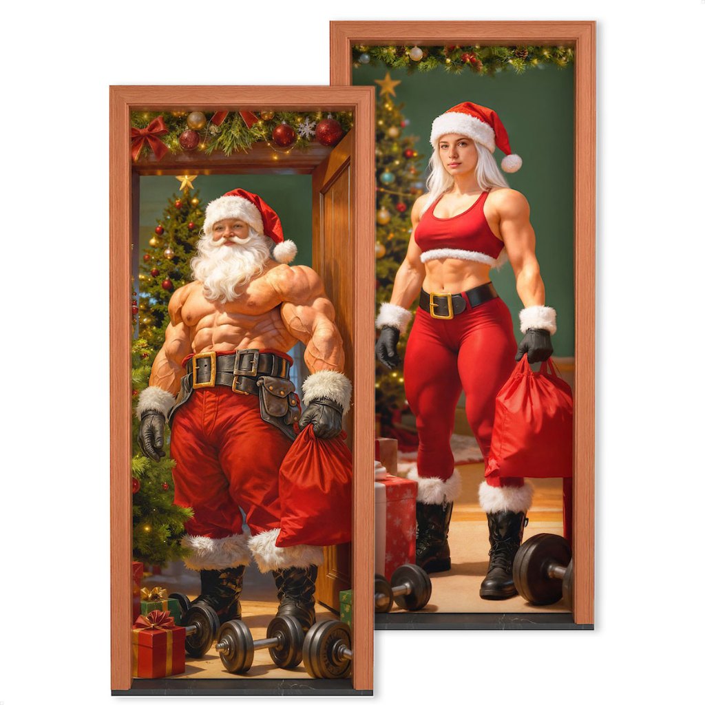 Capa de Porta Decoração Natal Academia Fitness Em Tecido Painel Retangular Veste Porta C/Elástico