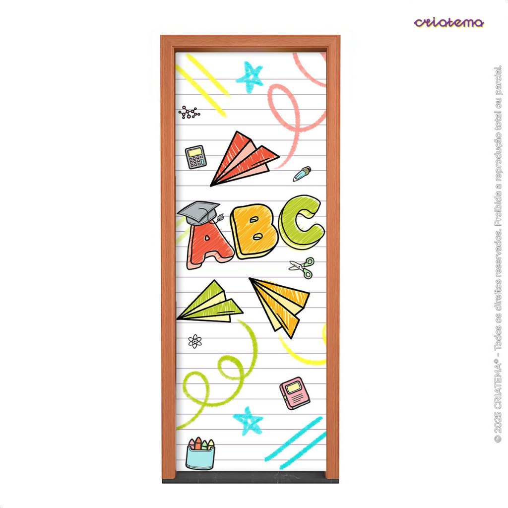 Capa De Porta Decoração Sala de Aula ABC Escolar Sublimado Em Tecido 0,80x2,10m Veste Porta