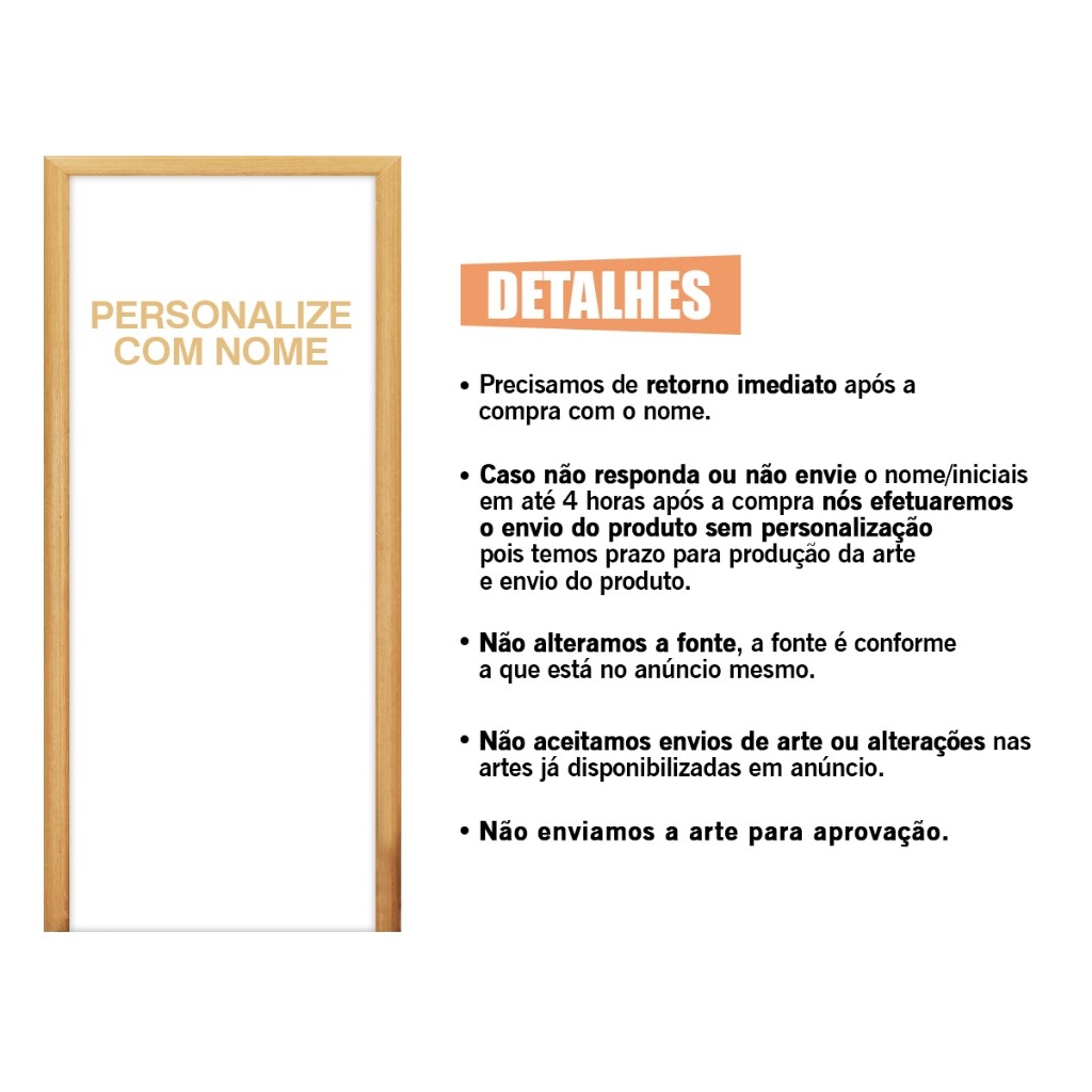 ATENÇÃO: PRECISAMOS DO RETORNO IMEDIATO APÓS A COMPRA COM A FOTO A SER PERSONALIZADA, CASO NÃO SEJA ENVIADO EM ATÉ 4 HORAS APÓS A COMPRA, O PRODUTO SERÁ ENVIADO SEM PERSONALIZAÇÃO. CAPA DE PORTA: Transforme suas portas com as capas exclusivas da Felicitá Sublimações! Perfeitas para quartos infantis, escolas e eventos, nossas capas trazem designs vibrantes que dão vida a qualquer ambiente. Fácil de instalar e cheia de estilo! Confira mais detalhes: • Tamanho - 0,85m de largura x 2,10M de altura • A medida da capa de porta é padrão e não pode ser alterada. • Não acompanha estrutura. FICHA TÉCNICA: - Material: Tecido Malha Poliéster Flexível 240g/ml - Composição: 95% Poliéster + 5% elastano - Acabamento: Costura em overlock nas laterais - Impressão: Os produtos são produzidos por meio da impressão sublimada com alta resolução, durabilidade e capacidade de reproduzir cores vivas e detalhes finos - Qualidade: Não reflete luz e não amassa - Garantia: Contra defeito de fabricação MEDIDA PADRÃO Capa de Porta - 0,85m de largura x 2,10M de altura INFORMAÇÕES ADICIONAIS SOBRE O PRODUTO: - As cores dos painéis podem variar de tonalidade em 15% devido a resolução do monitor ou tela do celular, mas nada que interfira na qualidade do produto; - Possui efeitos com tecnologia em 3D e Glitter nos fundos com brilho; - A capa de porta é do tipo veste-fácil, permitindo rápida instalação; - O produto NÃO acompanha estrutura. INSTRUÇÕES DE LAVAGEM: - Utilize sabão neutro; - Não torça o tecido; - Não coloque em máquinas de lavar; - Para secar, vire do lado avesso em baixa temperatura; - Evite exposição direta ao sol. PRAZOS E ENVIO: - Nossos produtos são enviados para todo o Brasil com Nota Fiscal e embalagens personalizadas com a nossa marca. Cuidado com fraudes! - O prazo de entrega é estipulado pela plataforma, faça uma simulação de compra e verifique o prazo de entrega. ATENÇÃO CLIENTES: - Não fazemos alterações ou troca das imagens do anúncio; - Realizamos personalização de temas para clientes recorrentes. Caso tenha interesse em solicitar um desenvolvimento, entre em contato conosco; - Caso tenha divergência com seu produto, antes de efetuar devoluções ou cancelamentos, entre em contato conosco. AINDA FICOU COM ALGUMA DÚVIDA? Deixe sua pergunta ou entre em contato com a nossa equipe diretamente pelos canais de comunicação. Iremos te atender o mais rápido possível.