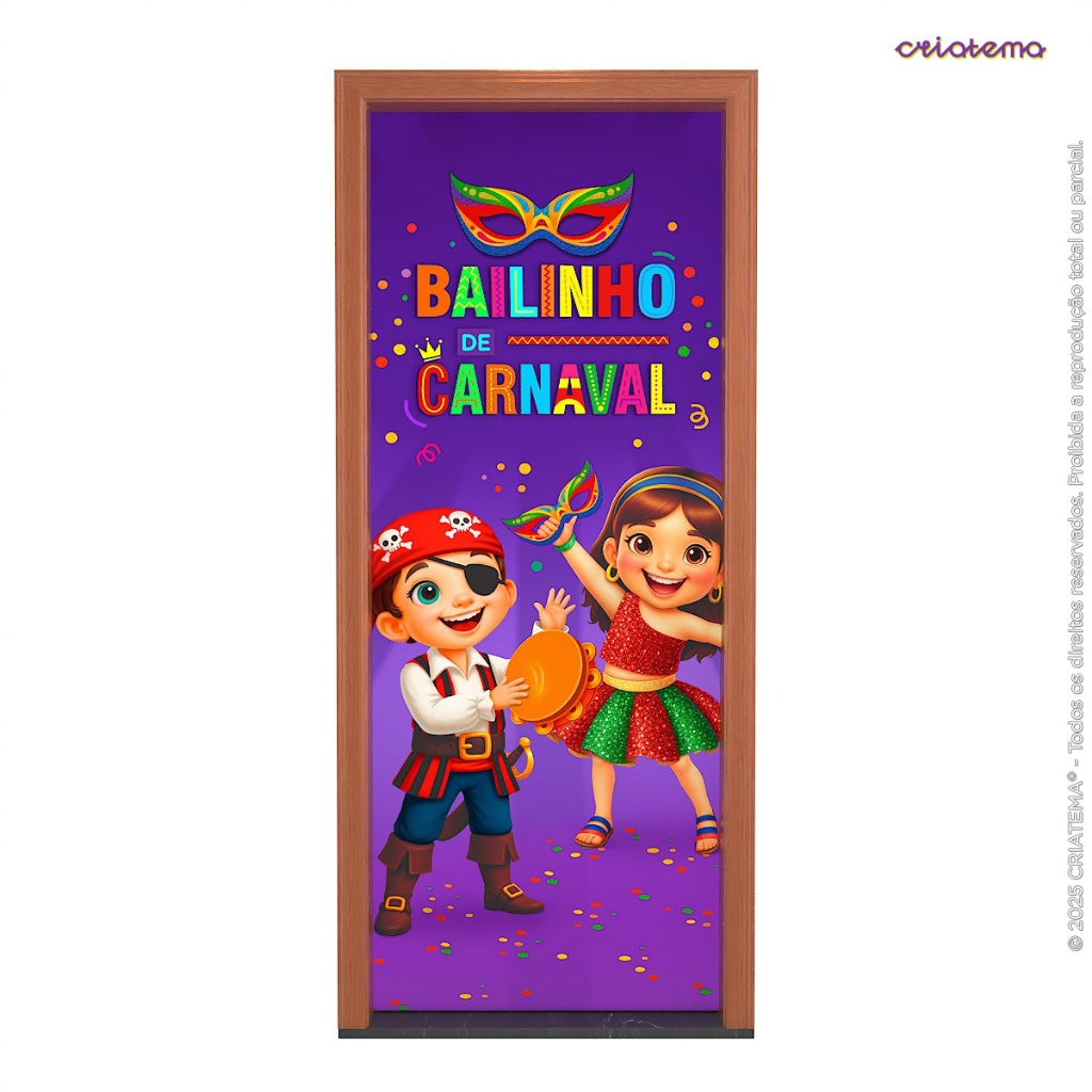 Capa de Porta Decorativa Escolar Bailinho de Carnaval Sublimada Em Tecido Retangular C/ Elástico