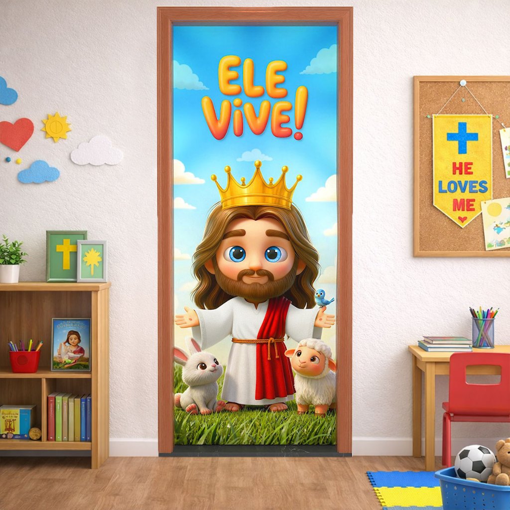 Capa de Porta Decorativa Páscoa 0,85x2,10m Em Tecido Sublimado com Elástico - Vários Modelos