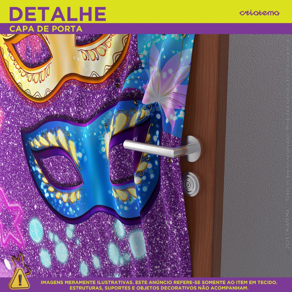 Painel Retangular Porta decorativo em Tecido fácil e prático de utilizar! Dê um toque especial com nossos produtos em tecido! Seja o anfitrião perfeito para sua festa ou simplesmente crie um ambiente temático em sua casa. Compre agora e transforme seu espaço inesquecível! MEDIDA DO PAINEL VERTICAL: >>> Tamanho Único - 0,85x2,10 com corte laser, evitando que seu produto desfie! >>> ATENÇÃO <<< Recomendamos o uso em portas na medida de 0,80cm de largura por 2,10cm de altura. BENEFÍCIOS DOS PAINÉIS CRIATEMA: • Arte Exclusiva. • Não amassa - tecido especial. • Não desbota, pode ser lavado quantas vezes desejar. • Alta durabilidade. • Não reflete luz. • Sem emenda. • Leve elasticidade • Acabamento à laser nas laterais. • Acabamento em elástico facilitando o encaixe DICA DE USO: • Decorações de casa nas portas. • Para ser fixado é muito fácil com elástico na parte superior e na parte inferior a fixação é em menos de 20 minutos! FICHA TÉCNICA: • Tecido Malha New (Que estica e não amassa). • Tecido Leve com ótimo caimento • Gramatura: 140g/m de excelente qualidade. • Composição do Tecido: 95% Poliéster e 5% de Elastano. • Elástico na parte superior e inferior. ITEM INCLUSO: 1 Capa de Painel Retangular em tecido com acabamento à laser e elástico. OBSERVAÇÃO: Todos os nossos produtos não acompanham estrutura/suporte. DÚVIDAS FREQUENTES: TRABALHAM COM PERSONALIZAÇÃO? Não! Nós optamos para uma melhor eficiência no processo de postagem do pedido, trabalharmos com produtos prontos. POSSUI GARANTIA? Nosso painel possui garantia contra defeito de fabricação. PRODUTO COM NOTA FISCAL? Todos os produtos acompanham de nota fiscal. >>> Tem alguma dúvida antes de finalizar sua compra? Envie uma mensagem para nós que ajudaremos você! <<<