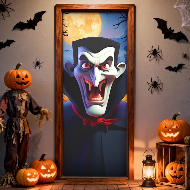 Capa de Porta Halloween Vampiro Painel Retangular Decorativo Tecido Sublimado 0,85x2,10m - PTA-03