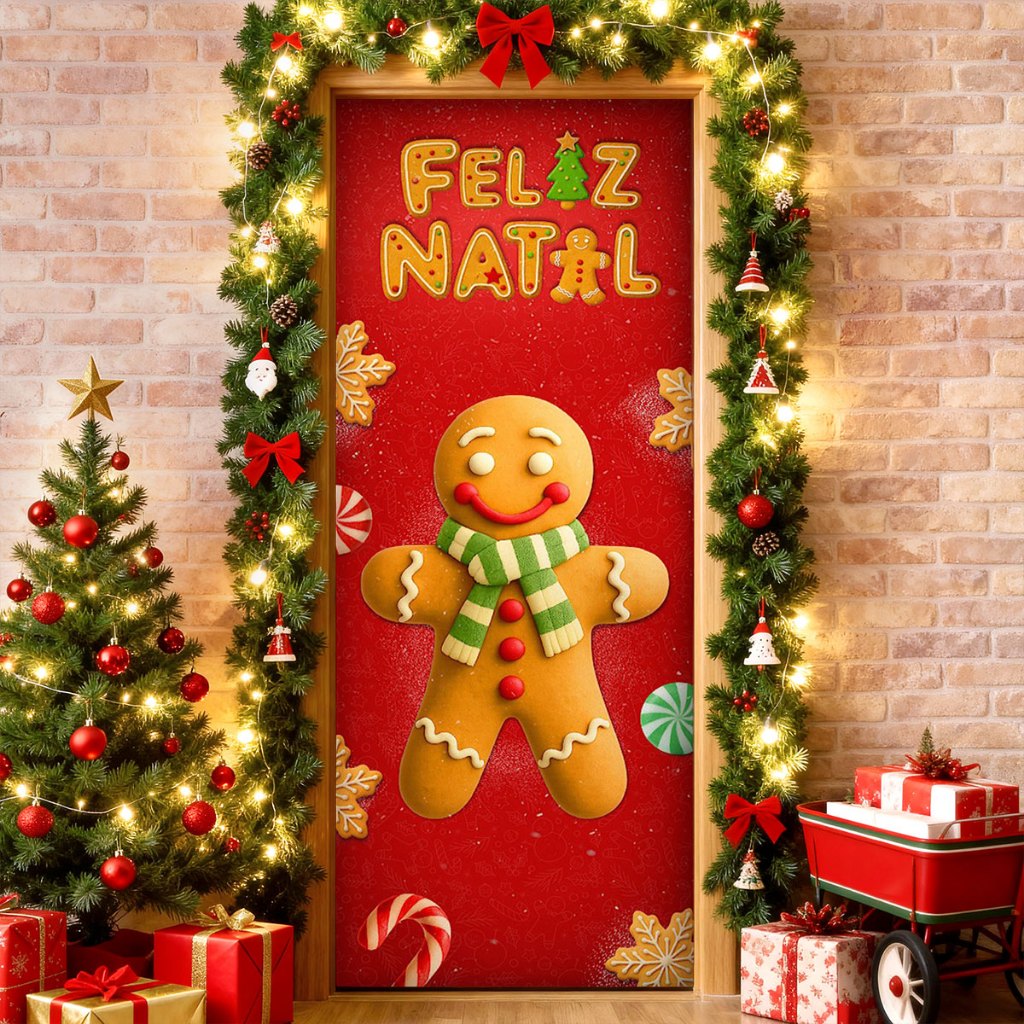 Capa de Porta Natal Guirlanda Em Tecido Decoração Natalina para Casa Sublimado 0,85x2,1m C/ Elástico