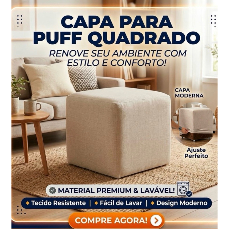 Capa de puff pufe quadrado tecido