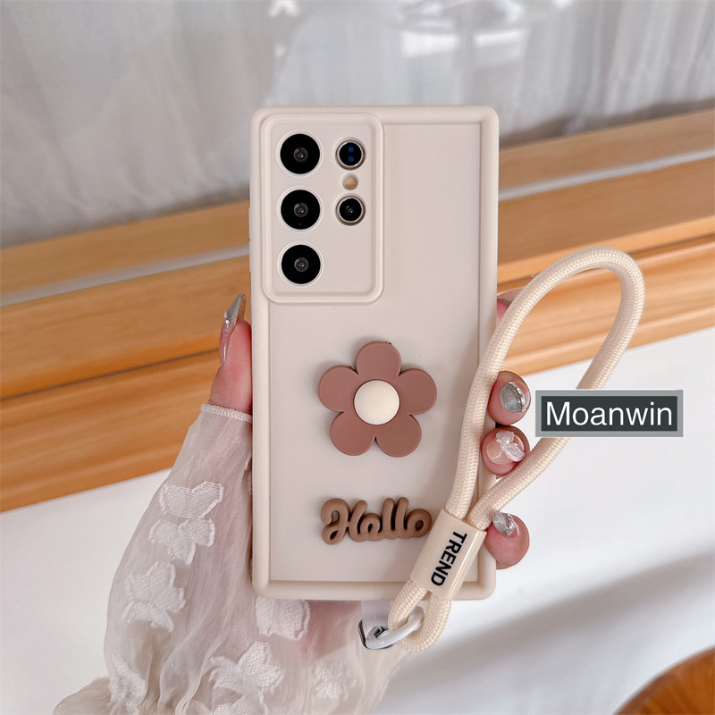 Capa De Telefone Com Cordão De Flor Fosca Para Samsung S25 S24 S23 S22 S21 Ultra Plus FE Note 20 Absorvente De Choque