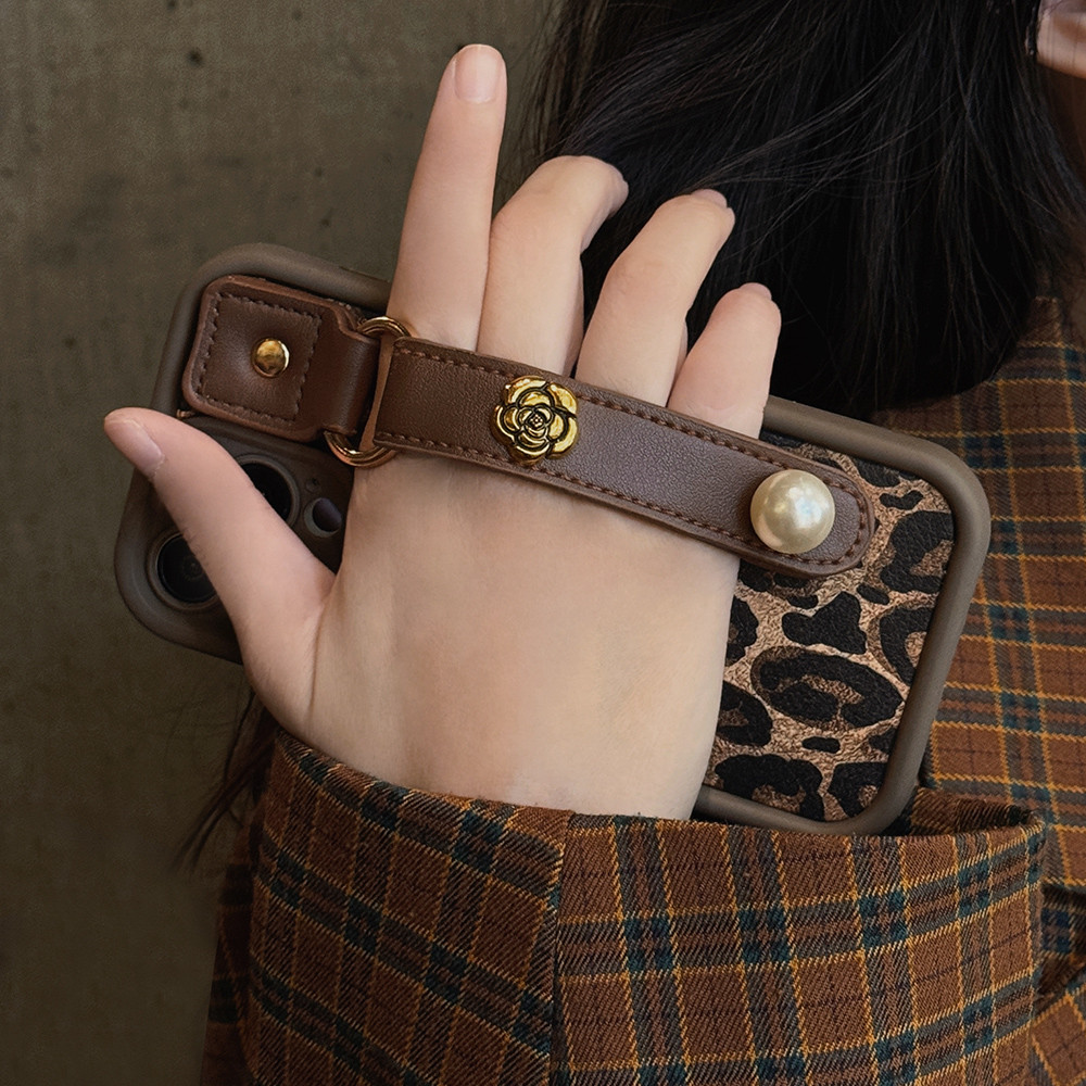 Capa De Telefone Com Pulseira De Camélia Estampa De Leopardo Para iPhone 16ProMax 16Pro 16Plus 15ProMax 14 13 12ProMax