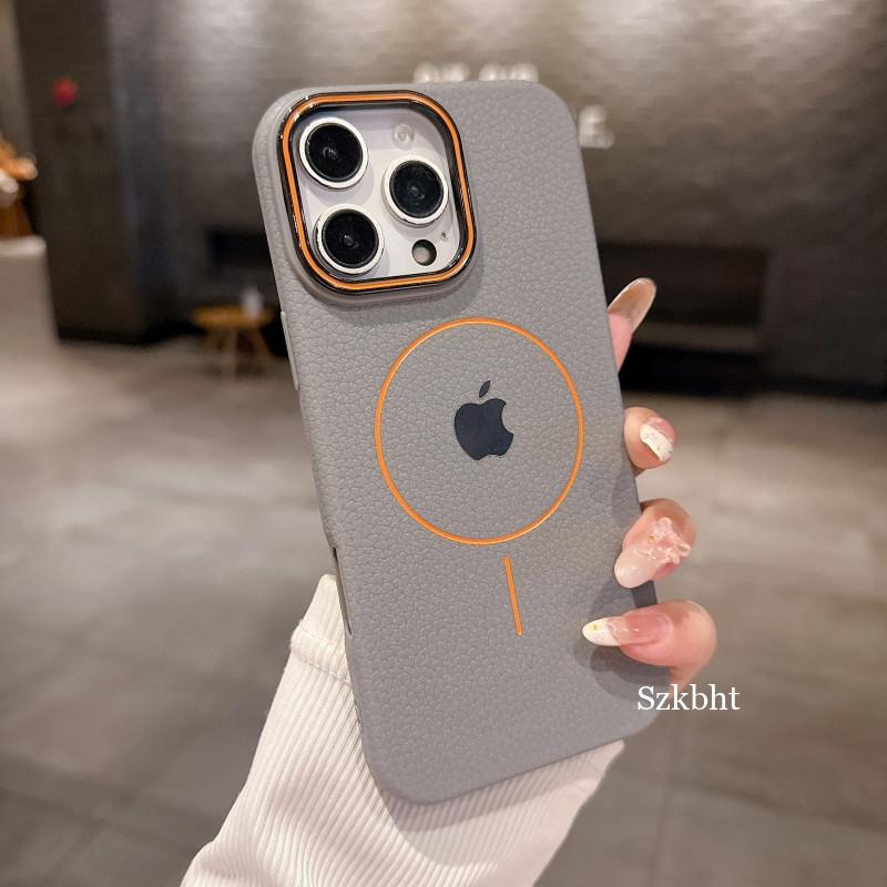 Capa De Telefone De Couro De Vaca De Alta Qualidade Para iPhone 16 15 14 13 11 12 Pro Max Carga Magnética Traseira Sem F