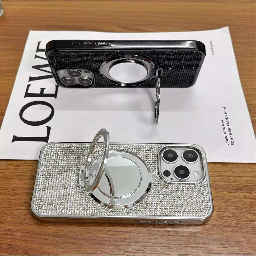 Capa De Telefone Estética De Diamante Para iphone 15 16 pro max 12 13 11 14 plus Luxo Suporte De Espelho Galvanizado Tra