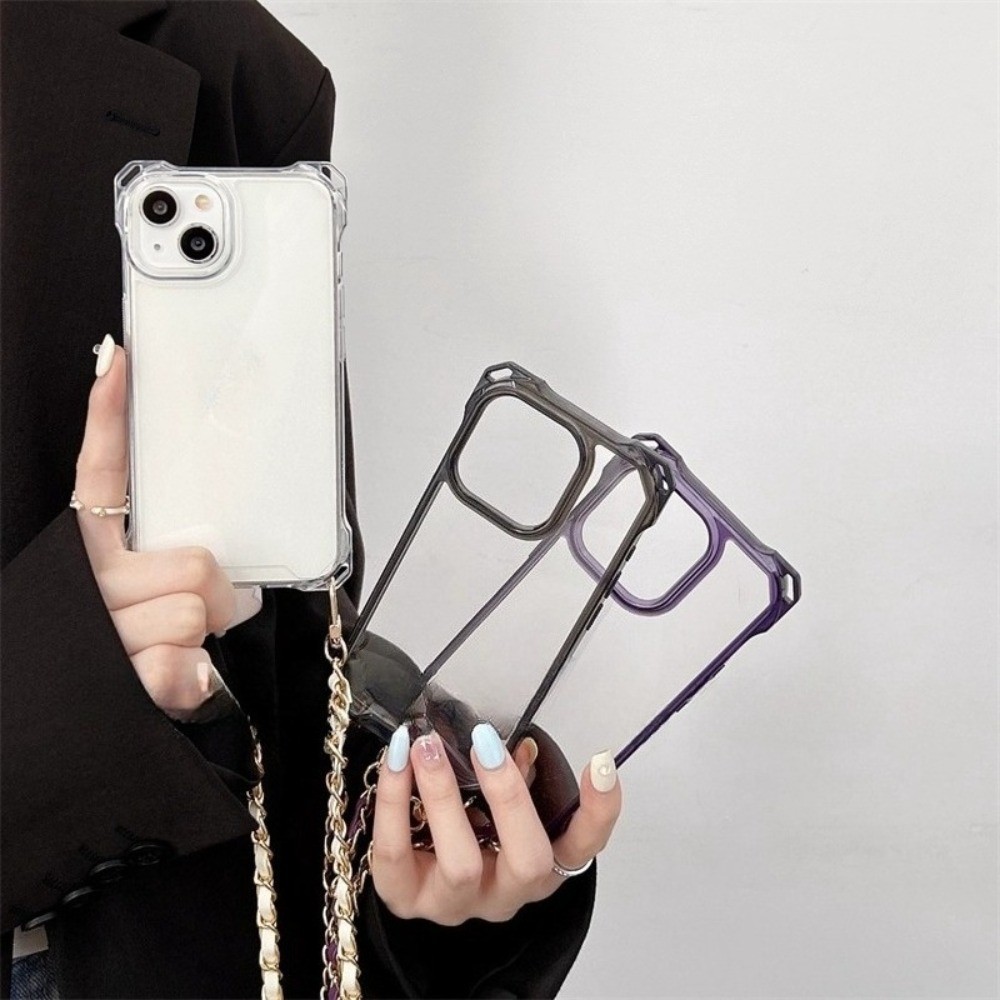 Capa de Telefone iPhone 17 Pro Max Corrente de Couro Cinta Cordão Crossbody Capa Cordão iPhone 16 15 14 13 12 11 Estojos Transparentes [Modelo de acessórios para celular]: Para Apple iPhone 12 Pro Max Para iPhone 13 Pro Max iPhone 14 Pro max 15 16 Plus 17 TPU macio de alta qualidade + plástico rígido Homem Mulheres : Preto Limpar Roxo Como a imagem mostrada [Função]: Protetor completo: resistente à sujeira + antiderrapante + à prova de choque + anti-riscos Pacote incluso: Capa de telefone X 1 PS: