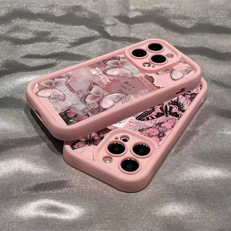 Capa De Telefone Macia De Silicone Para iPhone 16 15 Pro Max 14 13 12 11 7 8 Plus SE 2020 XS X XR Jornal Borboleta