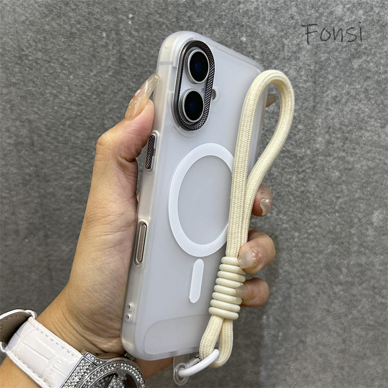 Capa De Telefone Magnética Fosca De Material Acrílico Com Cordão , Adequada Para IPhone 11 12 13 14 15 16 Pro Max Plus A