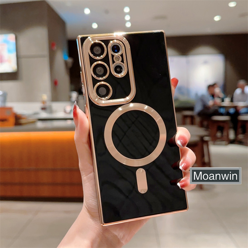 Capa De Telefone Magnética Galvanizada De Luxo Para Samsung Galaxy S25 , S24 , S23 , S22 , S21 Ultra Plus FE Absorvente