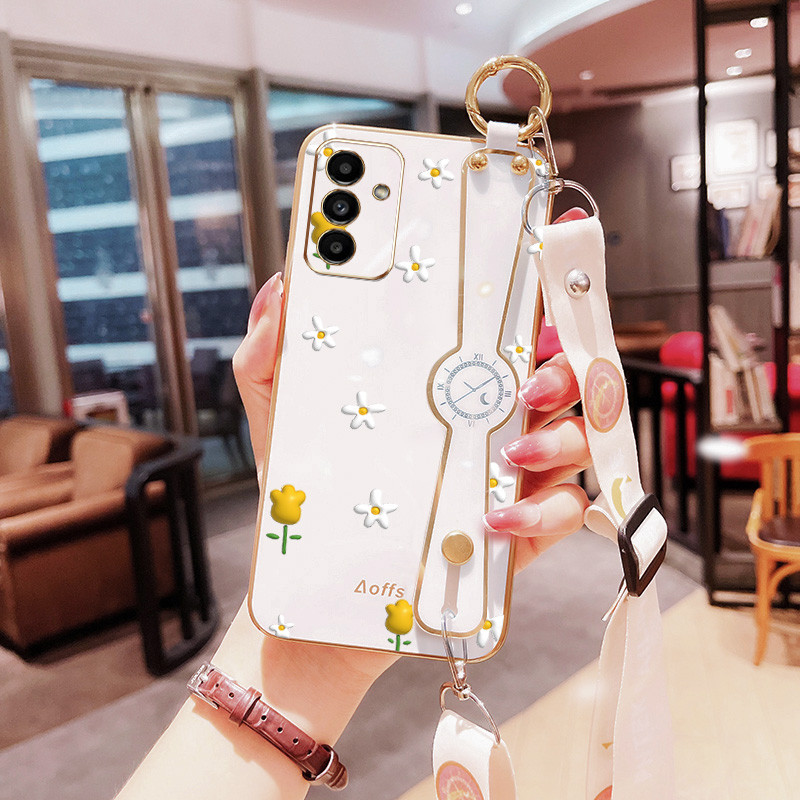 Capa De Telefone Mini Flores Para Samsung Galaxy A55 A35 A25 A54 A34 A16 5G A15 A14 A13 4G 5G A24 A04S 4G Caixa De Suporte De Alça De Pulso Anti-Queda Com Corda Longa