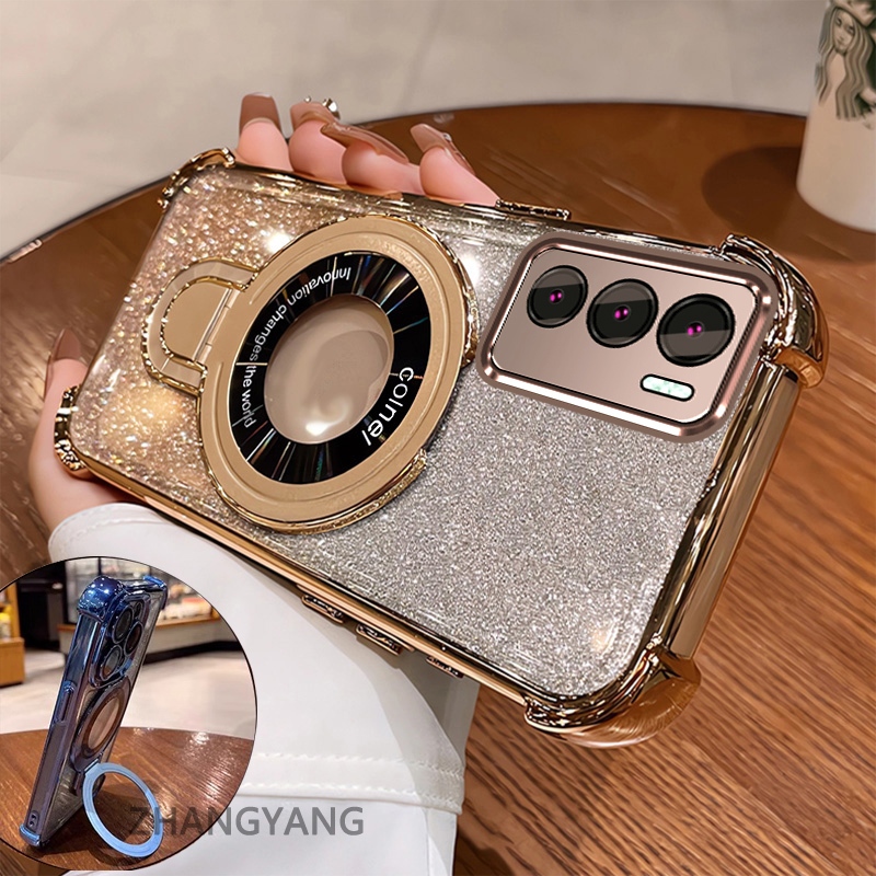Qual o preço de Capa De Telefone Para Realme C75 Flash Galvanizado Estética Liga Suporte Novo design silicone TPU anti Queda Casca Macia?