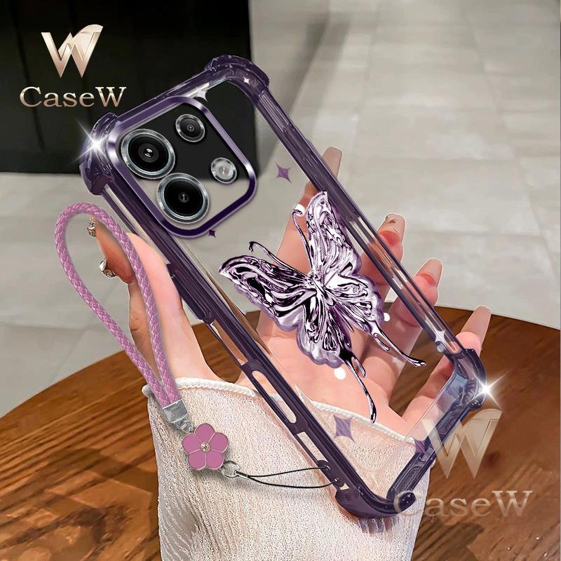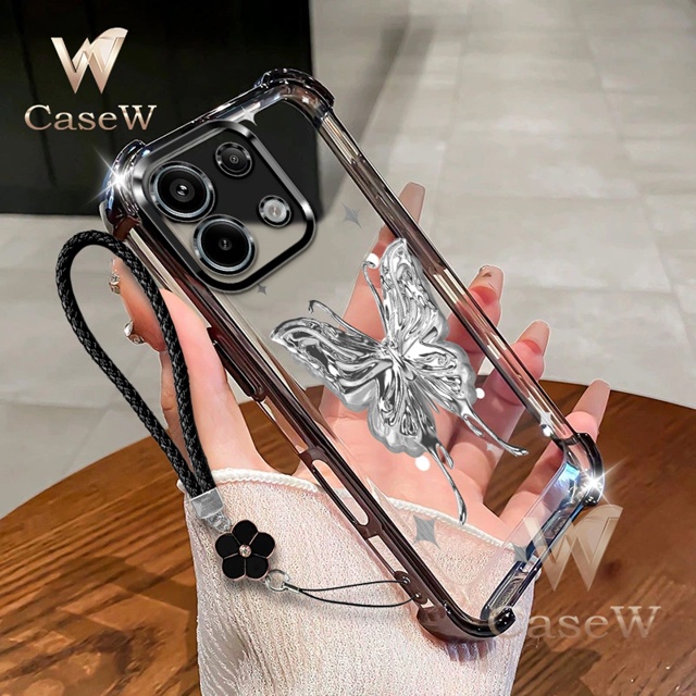 Capa De Telefone Para Redmi Note 13/13 Pro Plus 4G 5G Com Flor Corda De Mão Estilo Y2k Estrelas Borboleta Brilhantes Tra