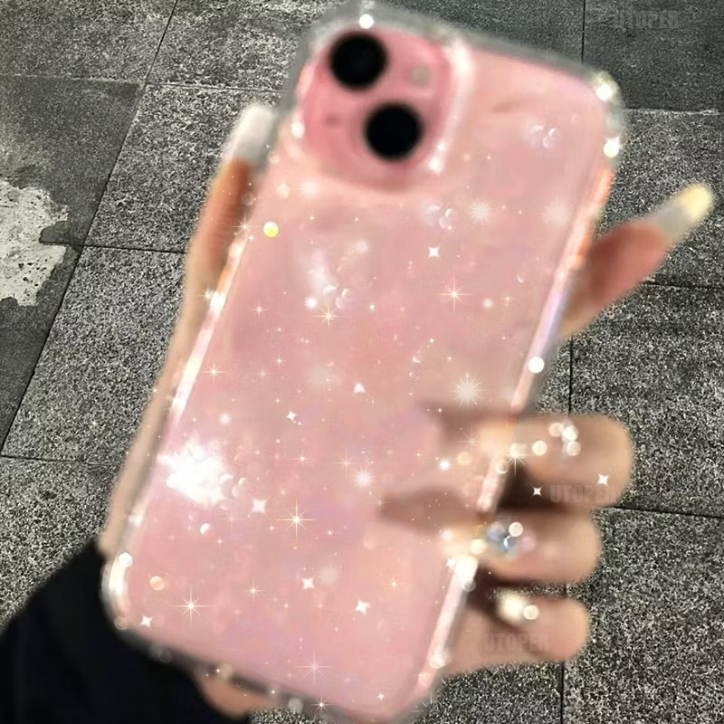 Capa de telefone transparente transparente adequada para iPhone 17 16 15 Pro Max 11 13 Pro Max 14 12 Luxo piscando galva