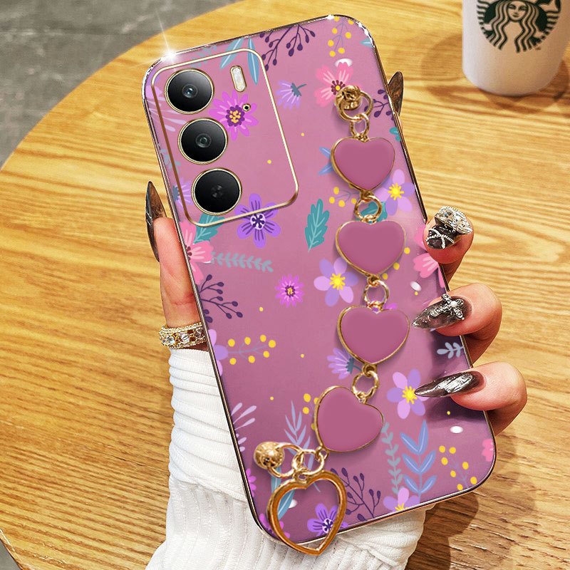 Capa De Telefone YBD Para OPPO A5 A5i Pro 4G 5G Pulseira Em Formato De Coração Com Tela Cheia Flores Frescas Roxas