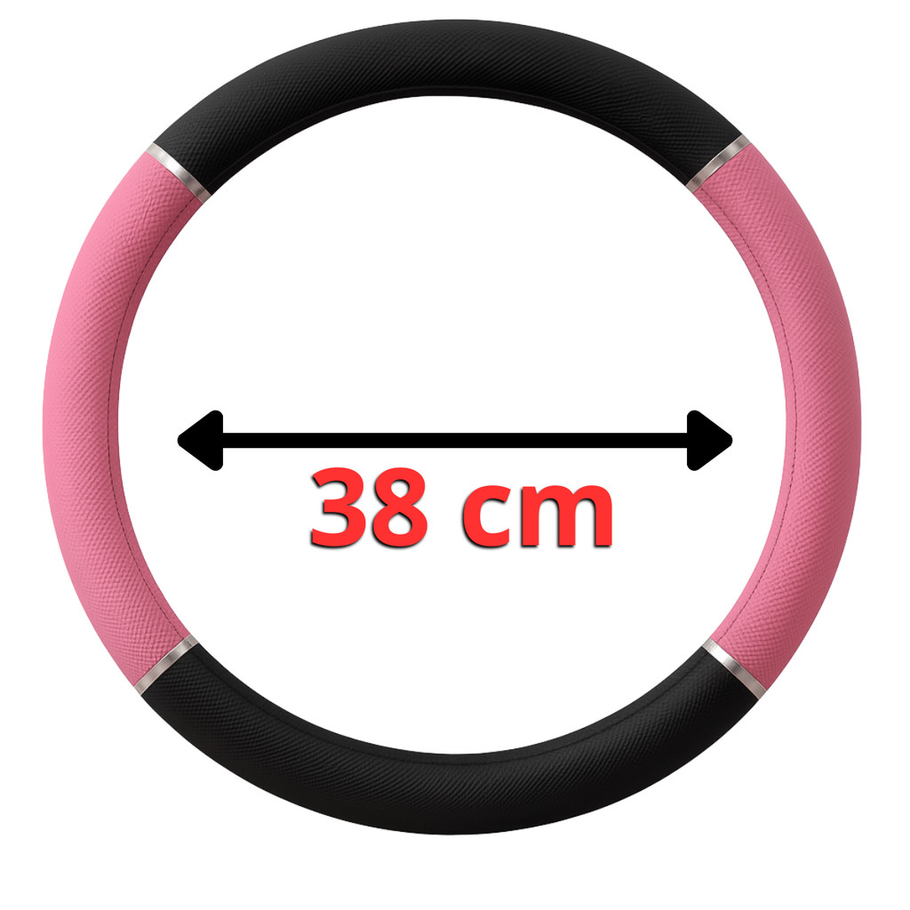 Capa De Volante 38cm Rosa/Preto Antiderrapante Para Conforto e Segurança ao Dirigir Carros