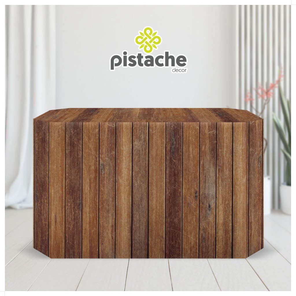 Capa Decoração de Mesa Madeira Marrom Em Tecido Veste Fácil Sublimado