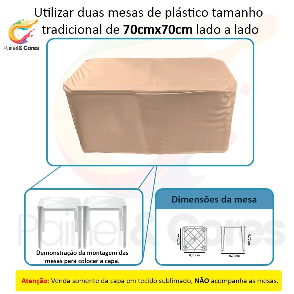 Contém 01 Capa Para 2 mesas Quadradas / Explicação na 3º foto do anúncio (Contem 1 capa tamanho 1,40 x 70 x 70 cm) IMAGEM MERAMENTE ILUSTRATIVA AS FOTOS DO ANÚNCIO NÃO SÃO FOTOS REAIS DO PRODUTO ATENÇÃO: NÃO FAZEMOS AJUSTE DE MEDIDA OU ARTE NOS ITENS DESTE ANÚNCIO. VERIFIQUE AS MEDIDAS ANTES DE FINALIZAR A COMPRA. ESPECIFICAÇÕES DO PRODUTO: Nossa capa para 2 mesas quadradas em tecido de helanca tem impressão em alta resolução que garante uma vivacidade de cores única.SV É flexível, isso significa que ela “estica” o suficiente para encaixar, mas as fibras do tecido sempre voltam para o estado original e é isso que garante que não deforma com o passar do tempo e o melhor disso tudo, não amassa. ( A capa ela tem um efeito de caimento mais reto ( toalha de mesa ) Alta gramatura que garante transparência mínima no branco e nas cores claras; Fácil de guardar, pode ser dobrado e tem pouco volume. Pode ser lavado e por ter baixa absorção de água, seca bem rápido. Enquanto o tecido existir a ESTAMPA ESTARÁ INTACTA! As cores dos produtos podem variar de tonalidade em 10% devido resolução do monitor ou tela do celular, mas nada que interfira na qualidade e beleza do produto que vai receber, Costura em overloque e acabamento em elástico nos painéis redondos e trios de capas de cilindro para melhor ajuste; Características da Capa para Mesas Tecido: Helanca Malha Premium Medidas: COMPRIMENTO 1,40 cm X ALTURA 0,70 cm X LATERAL 70 cm