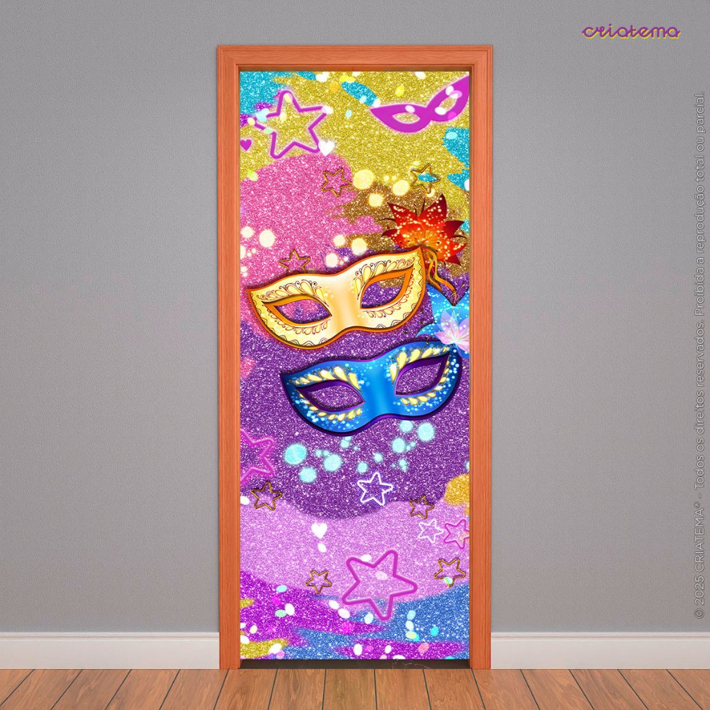 Capa Decorativa Para Porta Carnaval Em Tecido Sublimado Retangular Veste Porta C/ Elástico 0,85x2,1m