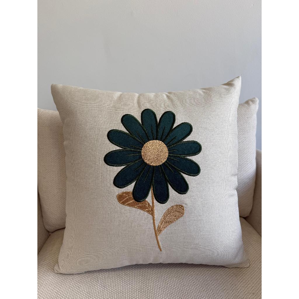 Capa em Linho Bordada "Margarida" para Almofada 45x45cm. (SEM ENCHIMENTO)